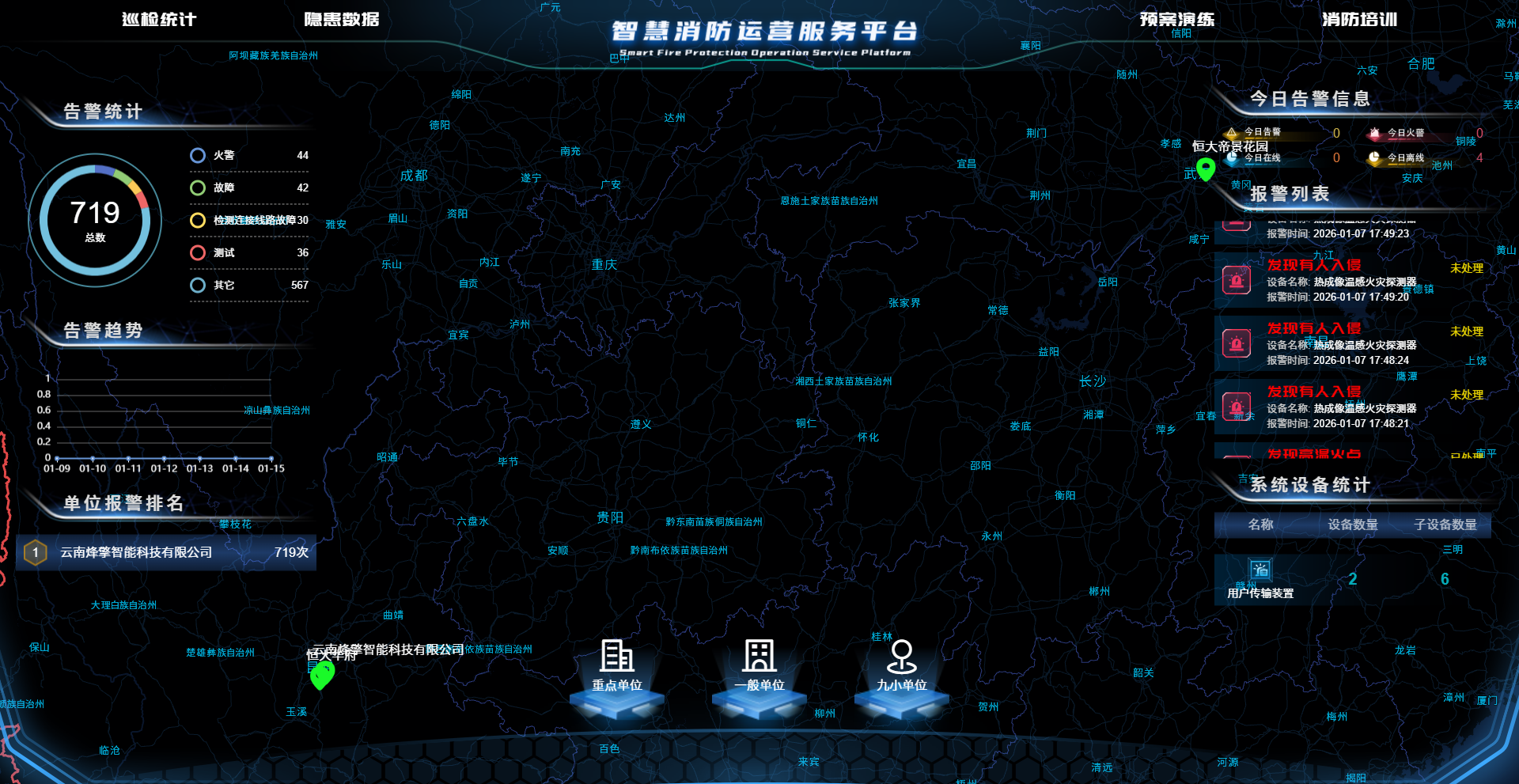 随着城市化建设步伐的加快,城市消防安全管理变得愈加重要。2017年10月公安部消防局发布<<关于全面推进"智慧消防"建设的指导意见>,要求综合运用物联网、云计算、大数据、移动互联网等新兴信息技术,加快推进"智慧消防"建设,全面促进信息化与消防业务工作的深度融合,构建立体化、全覆盖的社会火灾防控体系,全面提升社会火灾防控能力,随后国务院办公厅发布<<消防安全责任制实施办法>>进一步明确消防安全责任。各个地方政府部门也积极出台各种举措,以各种形式推动"智慧消防"的建设。