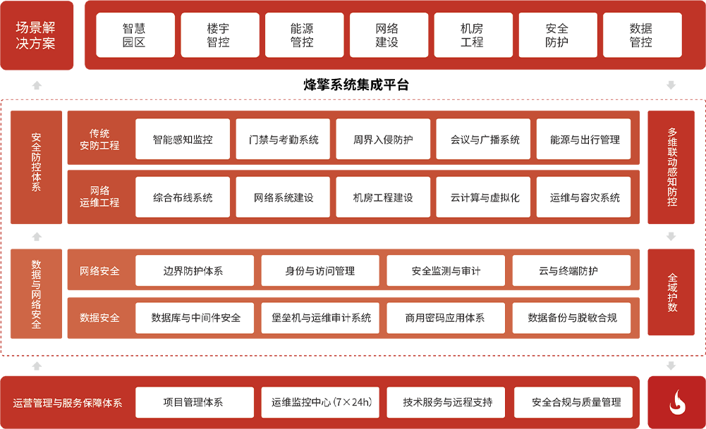 以建筑智能化与智慧园区为核心,涵盖网络通信、视频音频、智能充电、公共广播等多维度系统,通过整体设计与统一施工,实现楼宇与园区的安全、便捷、高效运行。
